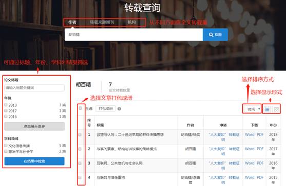 人大复印报刊资料数据库是人文社科类精品期刊数据库。该数据库学术性强、文章质量高。全文数据库(数字期刊库)包含法律类、经济学与经济管理类、教育类、历史类、文学与艺术类、文化信息传播类、哲学类、政治学与社会学类和其他类等9个专题,收录年限为1995年至今,共收录全文文献约70万篇;报刊摘要库,收录人大“复印报刊资料”16种专题文摘,收录年限为1993年至今,共收录文献约10万篇。利用该数据库,你可以进行资料检索、学习深造、学术研究、转载查询、论文写作等。