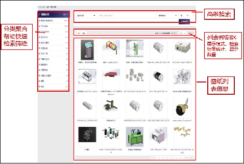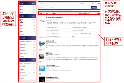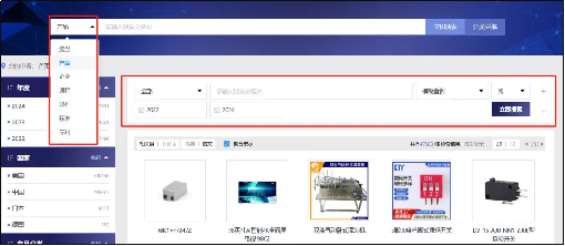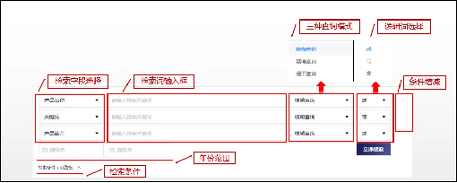提供快速检索、高级检索等功能,快速检索中可进行选型、产品、企业、课程等标签模块的切换。可以输入一个检索条件进行简单检索或输入多个检索条件实现多个检索字段的组合检索。