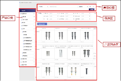 提供产品选型工具,包含冲压模具用零件、塑料模具用零件、工厂自动化零件、注塑成形用商品等门类,通过型号、规格和参数的在线选型,便捷的查询各类产品型号,还可对同一产品的不同型号的参数进行详细分析对比,选出性能优异的产品用于实际生产,提高产品研发效率。