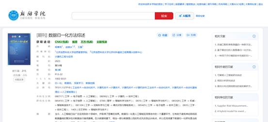 同时,系统深度融合人工智能技术,重塑学术资源服务模式。AI检索能够根据用户的检索式智能筛选相关文献,梳理问题脉络并生成结构化答案;知识挖掘模块则利用AI对知识点进行深度分析与关联,在知识、文献与检索范围之间构建“全面、整体”的知识网络,推动服务由传统的文献检索向主动的知识发现与知识服务升级。