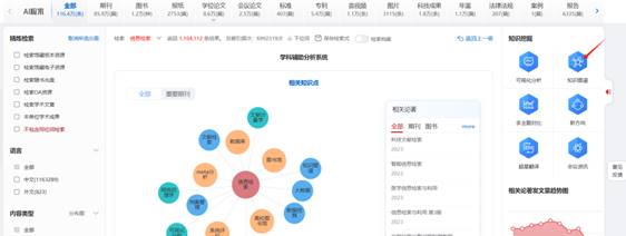 AI检索:AI检索能依据用户检索式筛选相关文献,梳理问题思路、给出答案。知识挖掘部分利用AI技术对知识点进行深度挖掘,通过在知识、文献以及检索范围中构造“全面、整体”的知识脉络,真正实现由文献检索深入到知识发现。