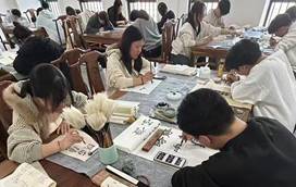 该活动由图书馆、团委主办,书法协会承办。活动旨在通过鼓励同学们尝试亲笔手抄国学经典的方式,引导其翻开古籍,走近博大精深的中华传统文化。让同学们从快节奏的电子阅读中抽离,体验“慢下来”的专注与宁静,更能深刻感受古籍的笔墨意趣与思想厚度。活动现场布置雅致,笔墨纸砚整齐陈列,浓浓的墨香扑面而来。参与者不论功底,或端坐案前临摹经典古籍片段,或凝神抄写国学经典。楷书的端庄工整、行书的流畅洒脱、隶书的古朴厚重,在一笔一划间尽显书法魅力。大家沉浸在静谧的书写氛围中,时而相互交流笔法技巧,时而探讨国学经典内涵,在慢节奏的体验中感受传统文化的博大精深,收获了内心的平和与充实。